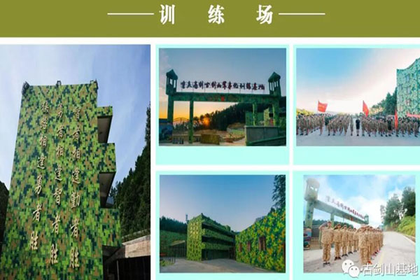重庆古剑山军事训练基地概述:重庆古剑山军事训练基地位于重庆綦江区古剑山风景区,面积约100平方公里,山清水秀,空气清新,气候宜人,可完成学生军训,企业员工军训,魔鬼式训练等不同军训类科目。 重庆古剑山军事训练基地位于重庆綦江区古剑山风景区,面积约100平方公里,山清水秀,空气清新,气候宜人。