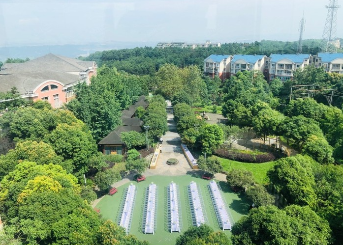 铁山坪培训基地基地镶嵌于玉峰山(铁山坪)森林中心之巅,拥有50亩森林资源,近可观松涛云涌,远可眺江际长流,会议场地齐备,誉为重庆肺叶上的会议中心。酒店交通便利,距主城约35分钟车程,按星级标准建设,拥有各类客房200余间(2020年翻新装修), 10-400人各类会场12个,户外拓展培训场地合计10000平方,连续荣获2020-2022年度重庆市政务会议定点宾馆资格,是举办各类专业会议、开展团建拓展、聚会休闲的理想选择地。 孔雀花园是酒店园林的重要组成,近年来不断改造优化,紫藤长廊、孔雀婚礼草坪、荷花瀑布池、樱花户外餐厅、竹林餐厅、为游客驻足与山水间增添一花一世界的意境。 毗邻酒店的森林营地是重庆市中小学社会实践教育基地,占地50亩,可以开展拓展团建、栈道登山、山地车探险、林地CS;亲子露营,林地木屋,火盆烧烤、柴火鸡;体验自然生活,回归自然怀抱。